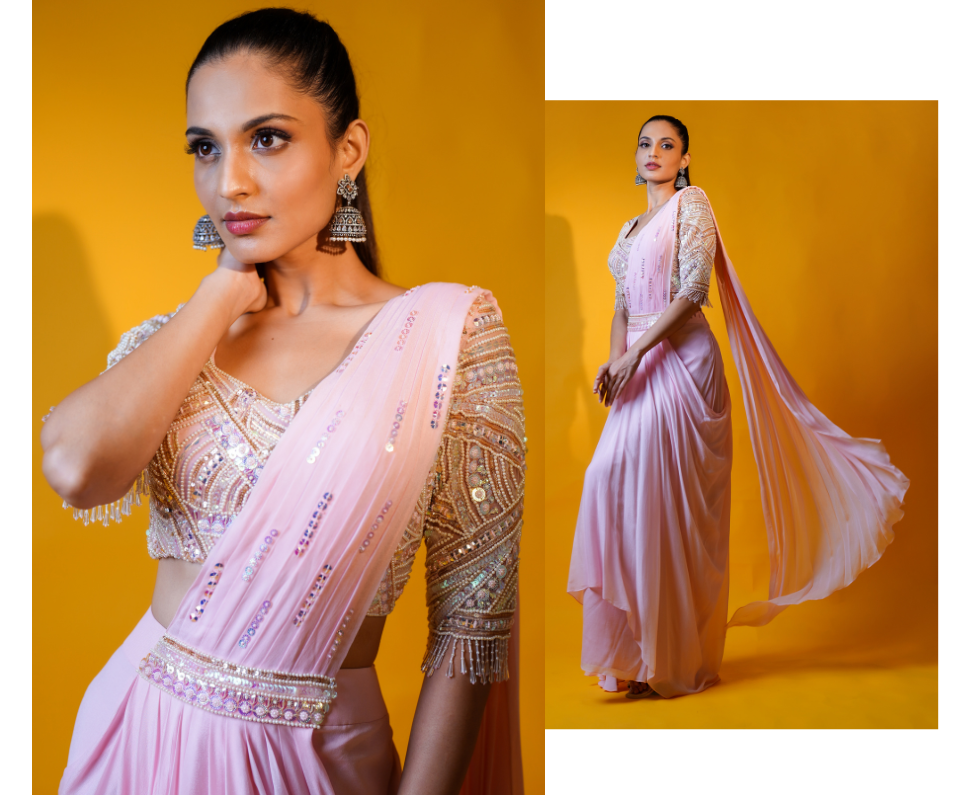 Yellow crepe crushed gown