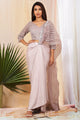 Lilac shaded draped skirt with attached shaded pleated drape and crop top, belt.