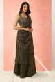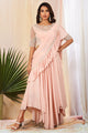 Peach shimmer drape skirt with attached drape teamed up with matching crop top.