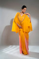 Mustard andpink cape styl...Teal green crepe crop top and skirt set.