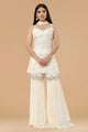 Ivory textured fabric kurta...Teal green one shoulder crop top and skirt set.